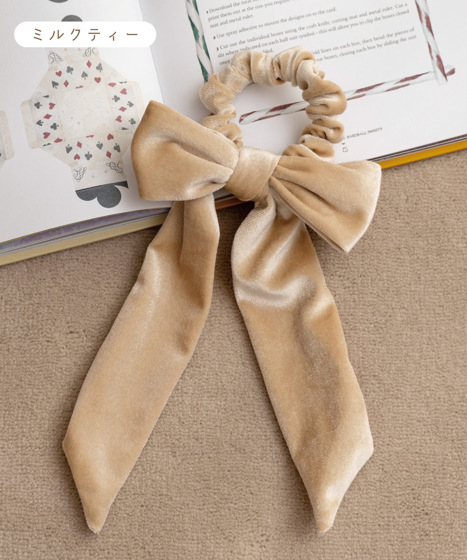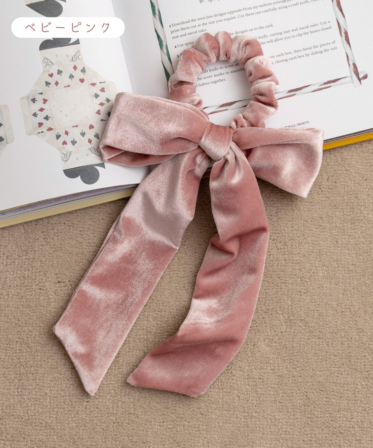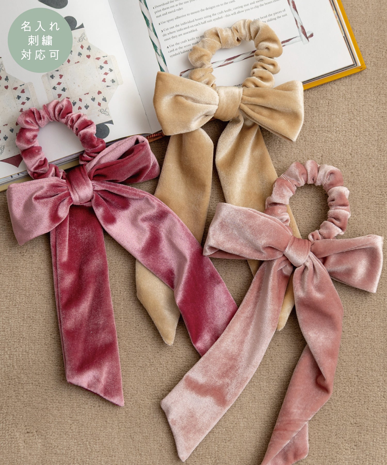 リボンシュシュとしてヘアアクセにはもちろん、リボン部分だけでバッグに結んで楽しむこともできます。