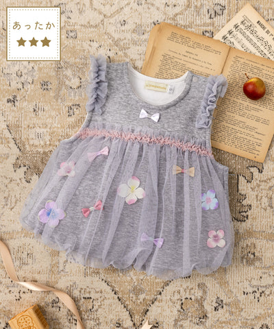 お花とリボンのチュニックベスト/スモーキーラベンダー