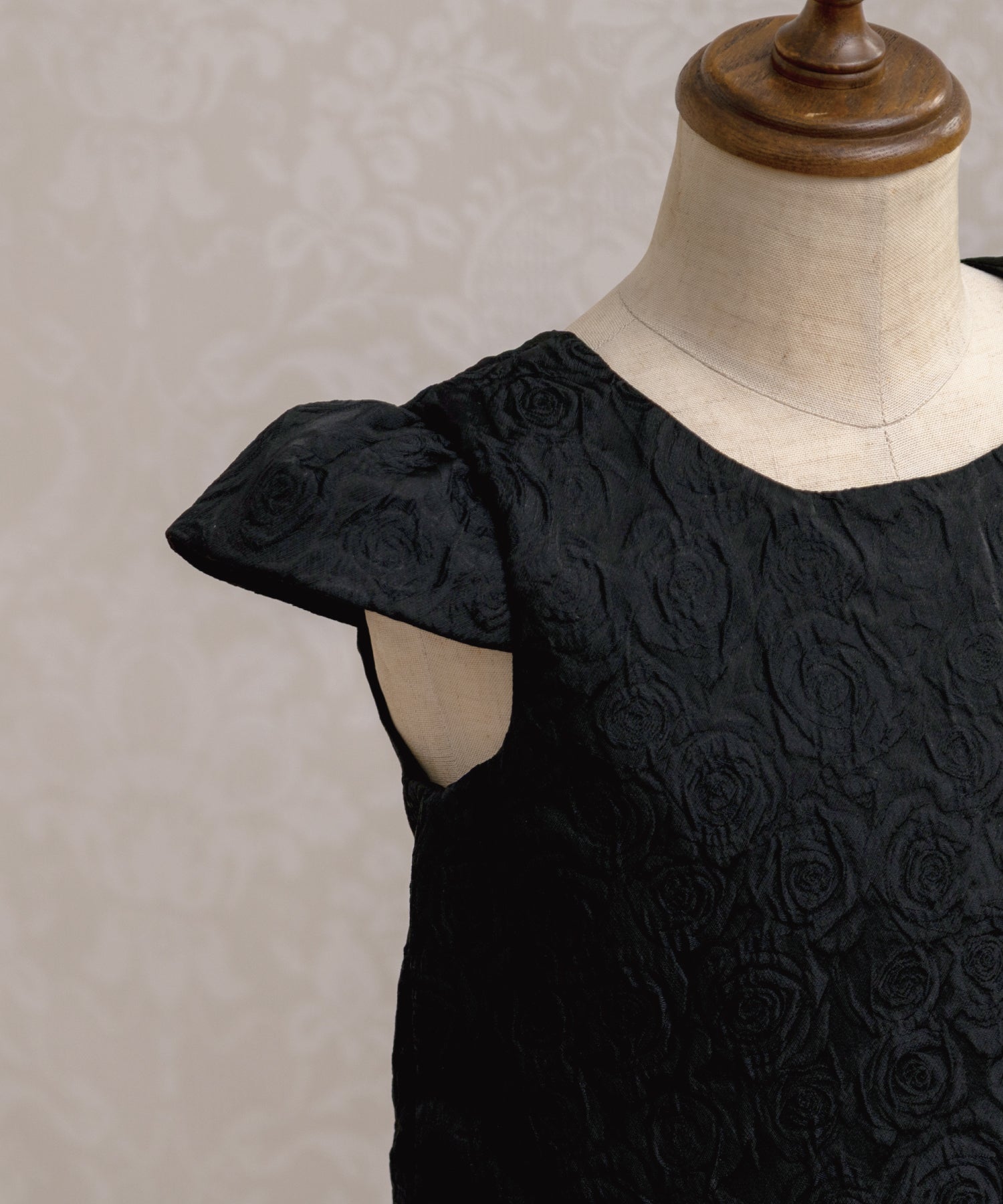トップスはローズ柄のジャガード織でエレガントな雰囲気。程よく肩が隠れるキャップスリーブ。