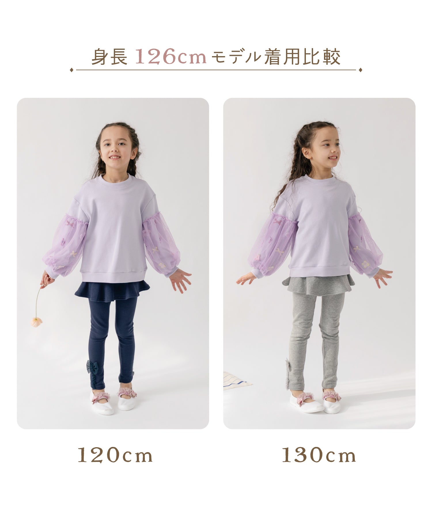 動きやすいスウェットに、軽やかなフレア切り替えで元気に動く日も可愛さをキープ。