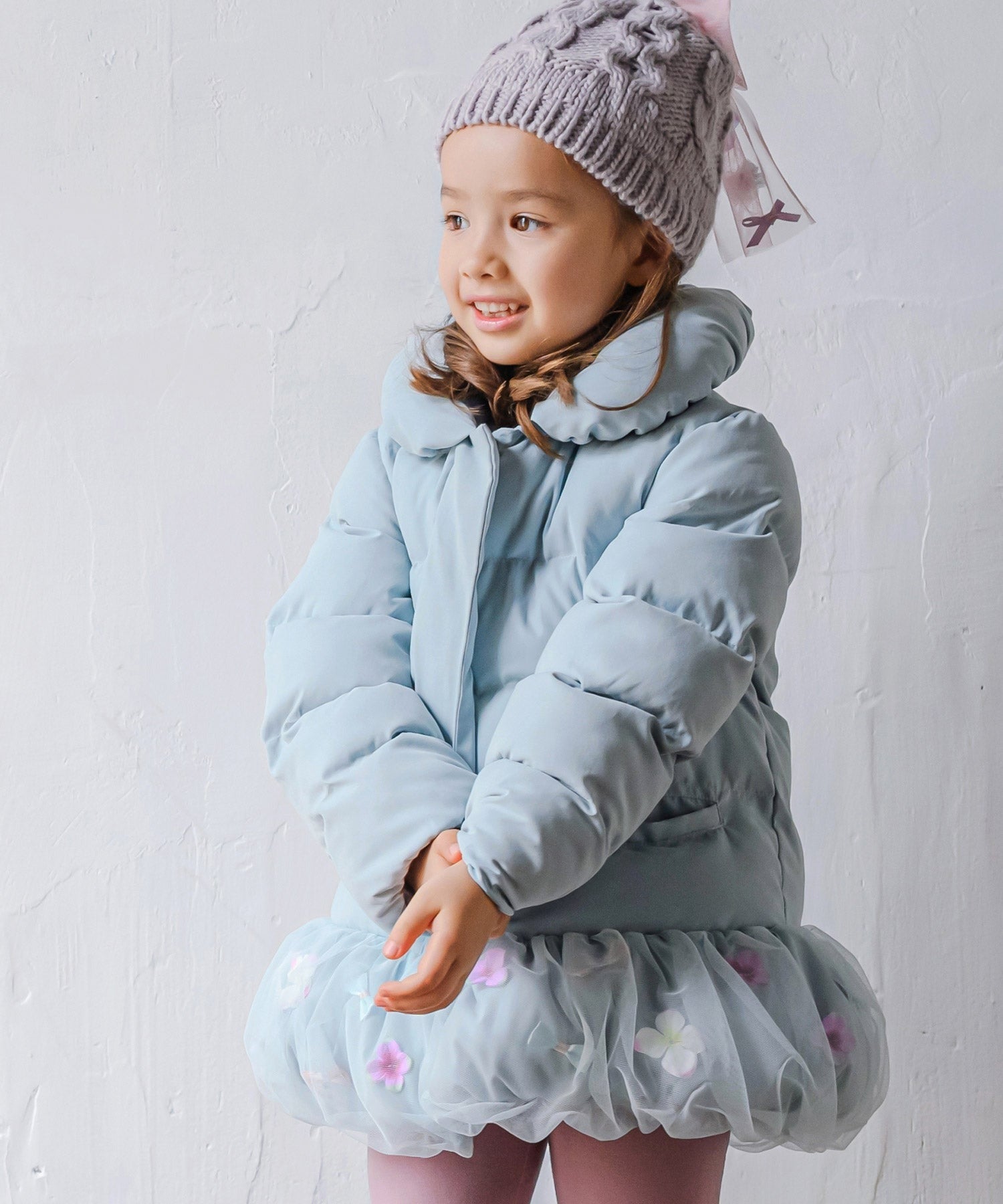 青い空に舞うパウダースノーのようにピュアなカラーが小さなレディの愛らしさを引き立てます。