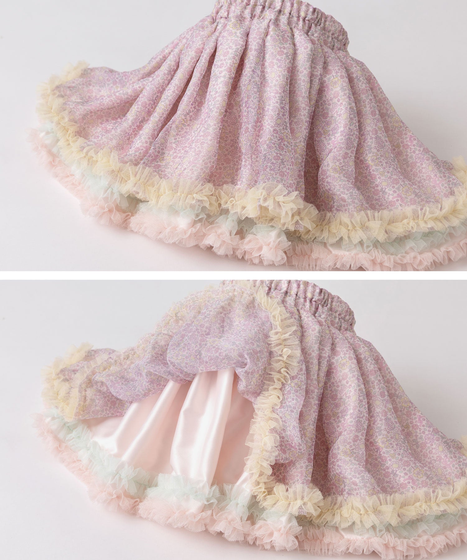 軽やかなシフォン素材のチュチュ。程よいボリューム感でデイリーにも楽しめます。裏地はサテンでリッチな仕上がり。