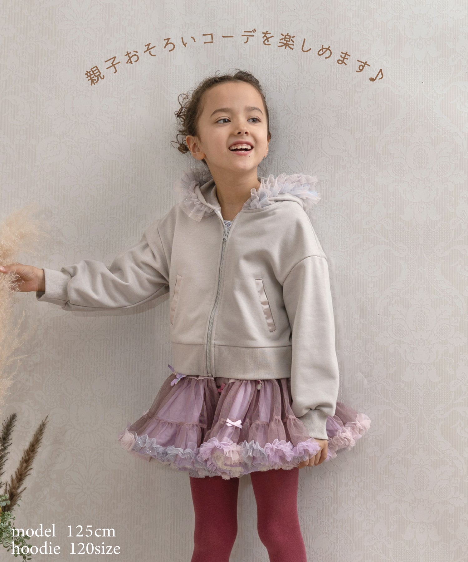 親子お揃いできる!華やかフリルのショート丈パーカー