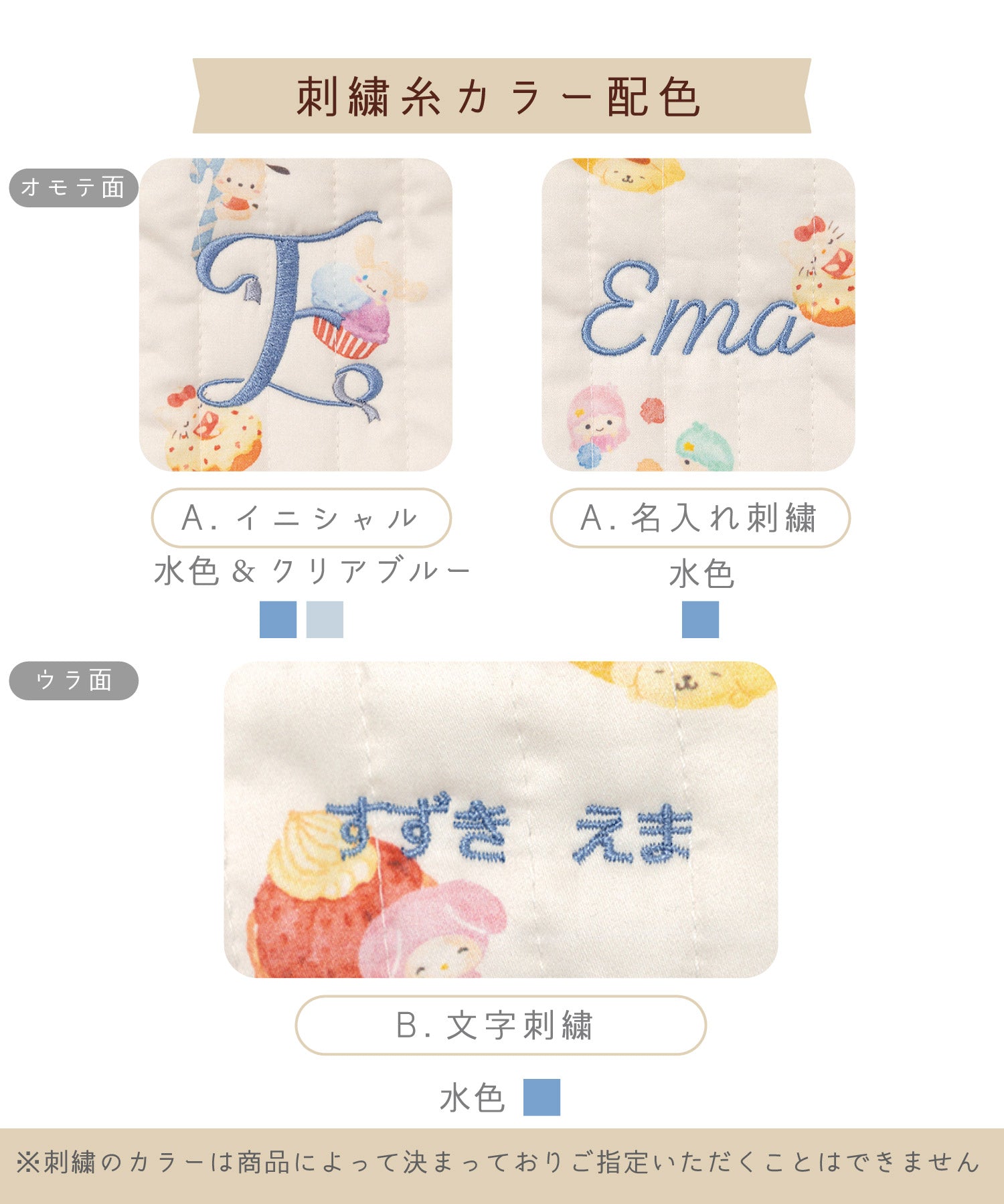※刺繍のカラーは商品によって決まっており、ご指定いただくことはできません。