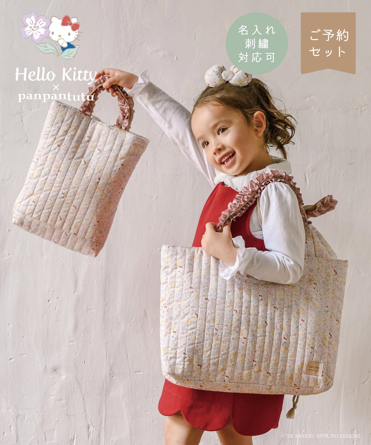 ピンクやブルー、ラベンダー...色とりどりのお花が咲くプティフルール柄。毎日の通園通学もハローキティと一緒ならもっと楽しく!