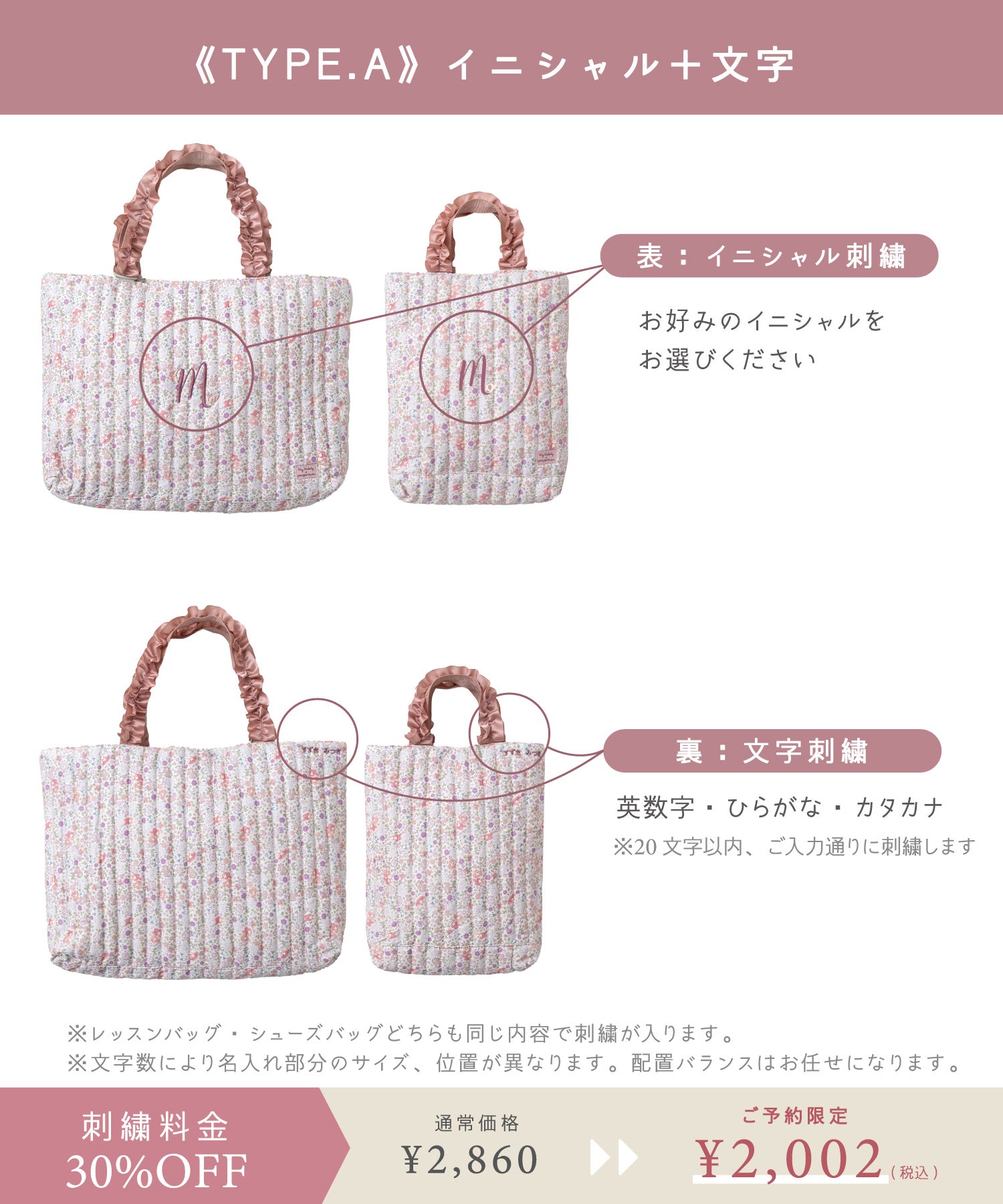 毎年春頃には欠品してしまう人気レッスンシリーズ。入学直前のシーズンは名入れ刺繍もお時間がかかりますので、早めのご予約がおすすめです!