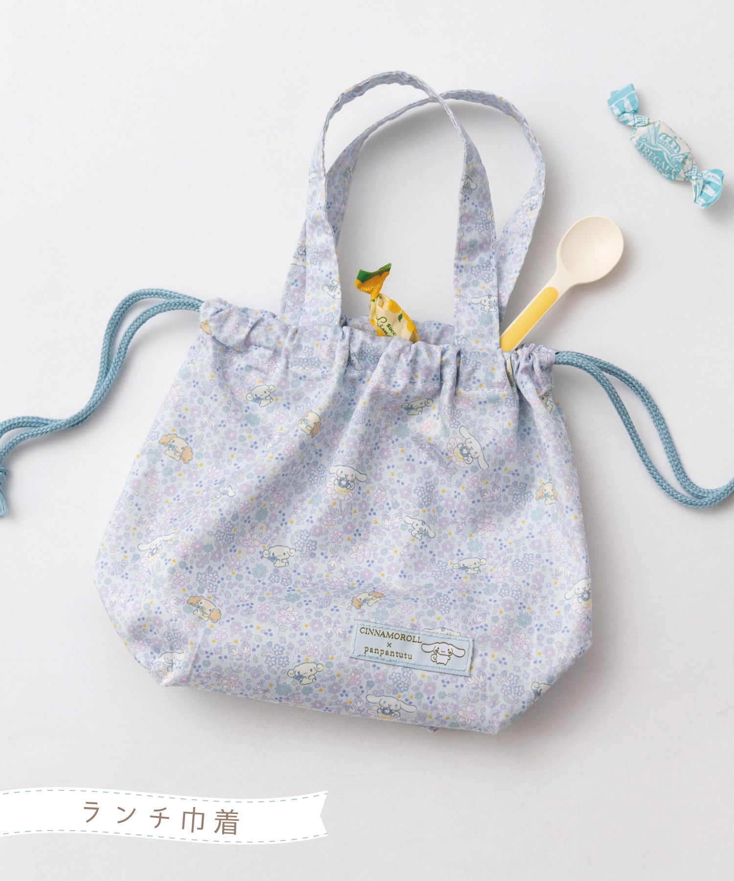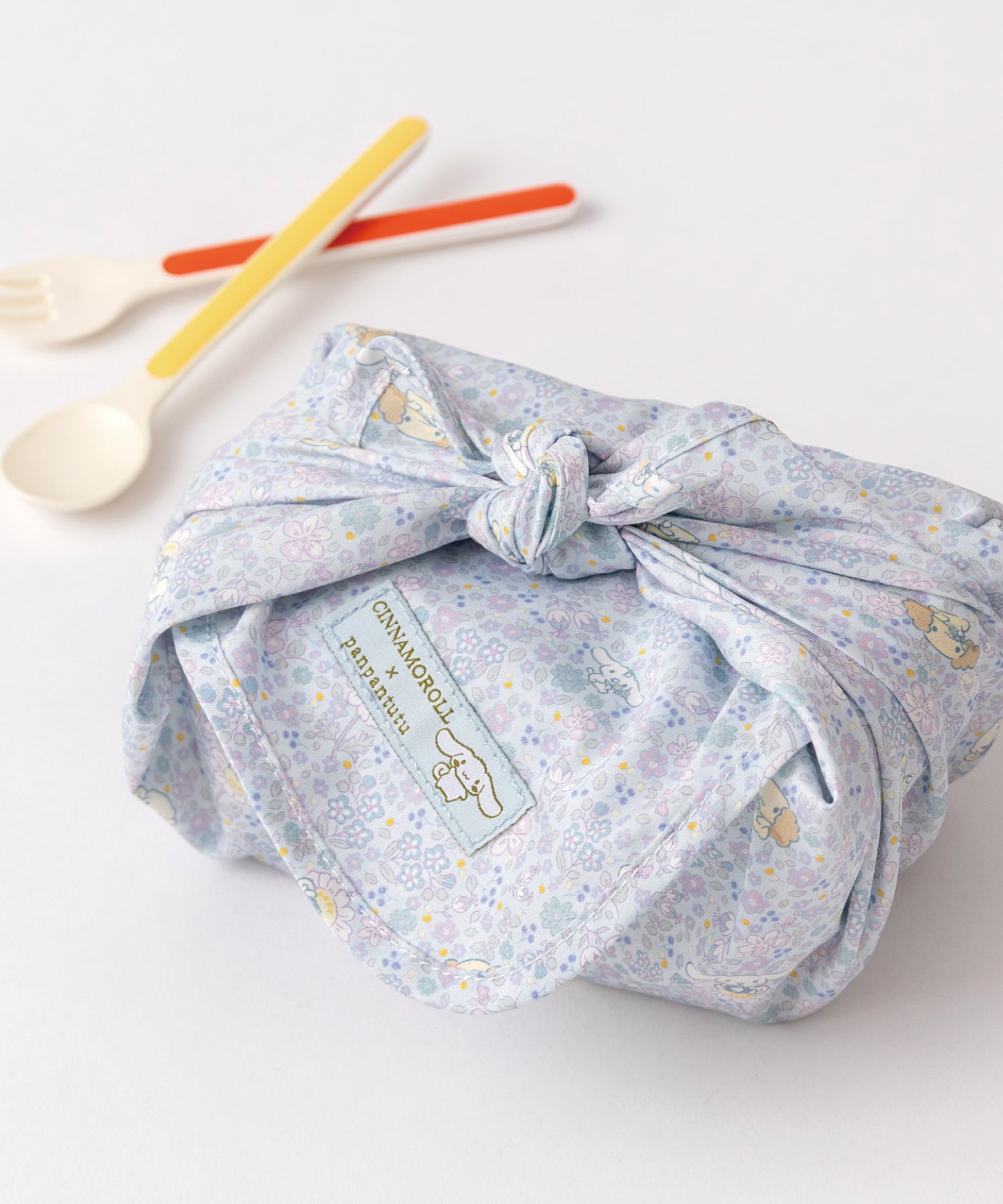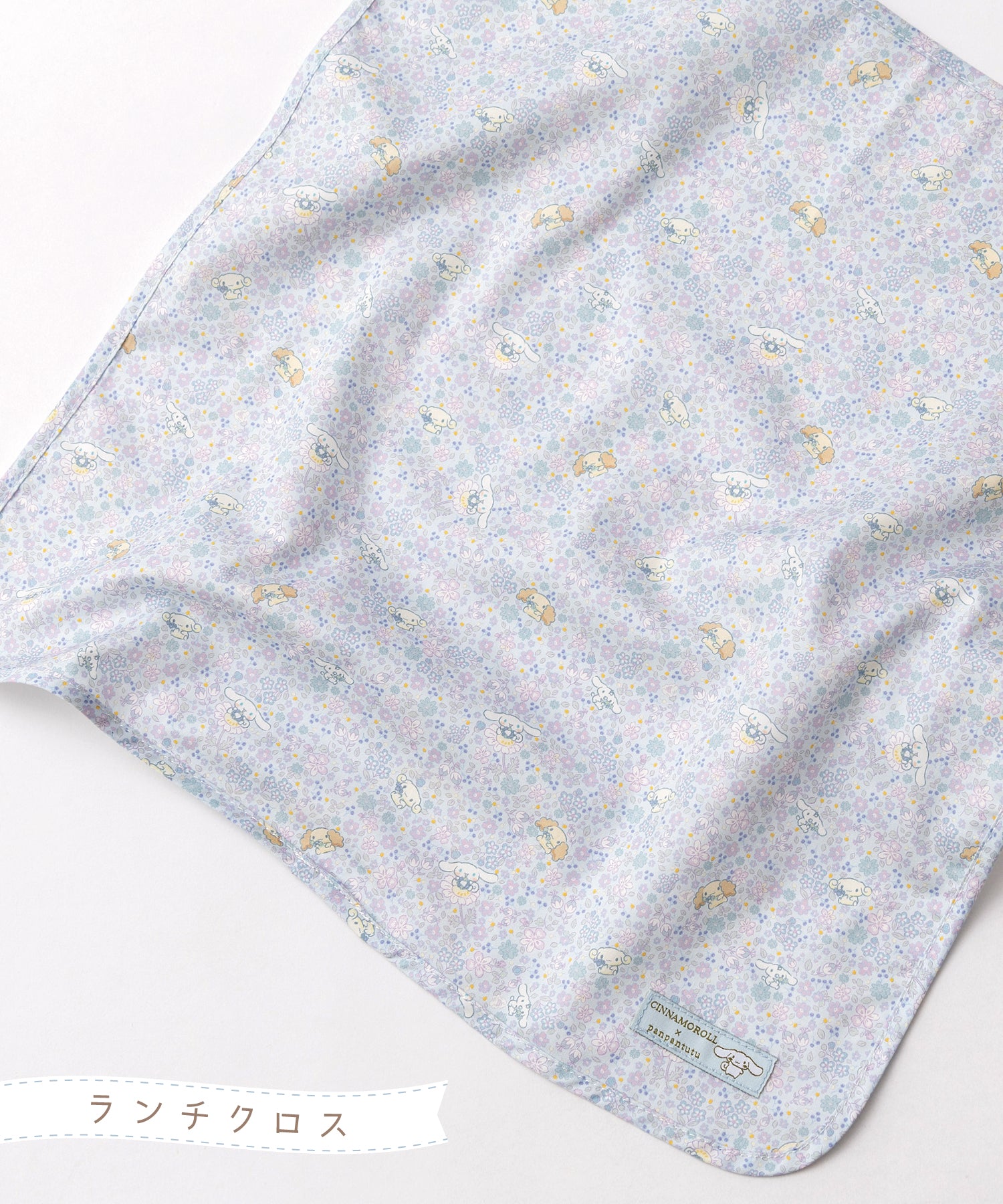 シナモロールのタグがワンポイント。お弁当を包みやすいコットン素材。ランチョンマットにも。
