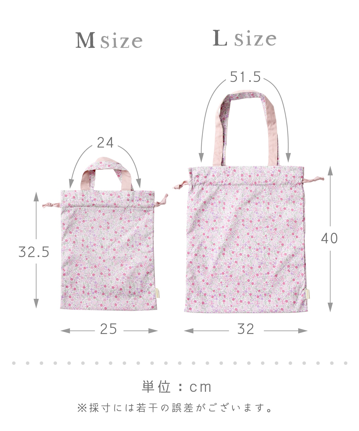 通園通学用のシューズバッグやお着替え入れにもちょうどいいサイズです。