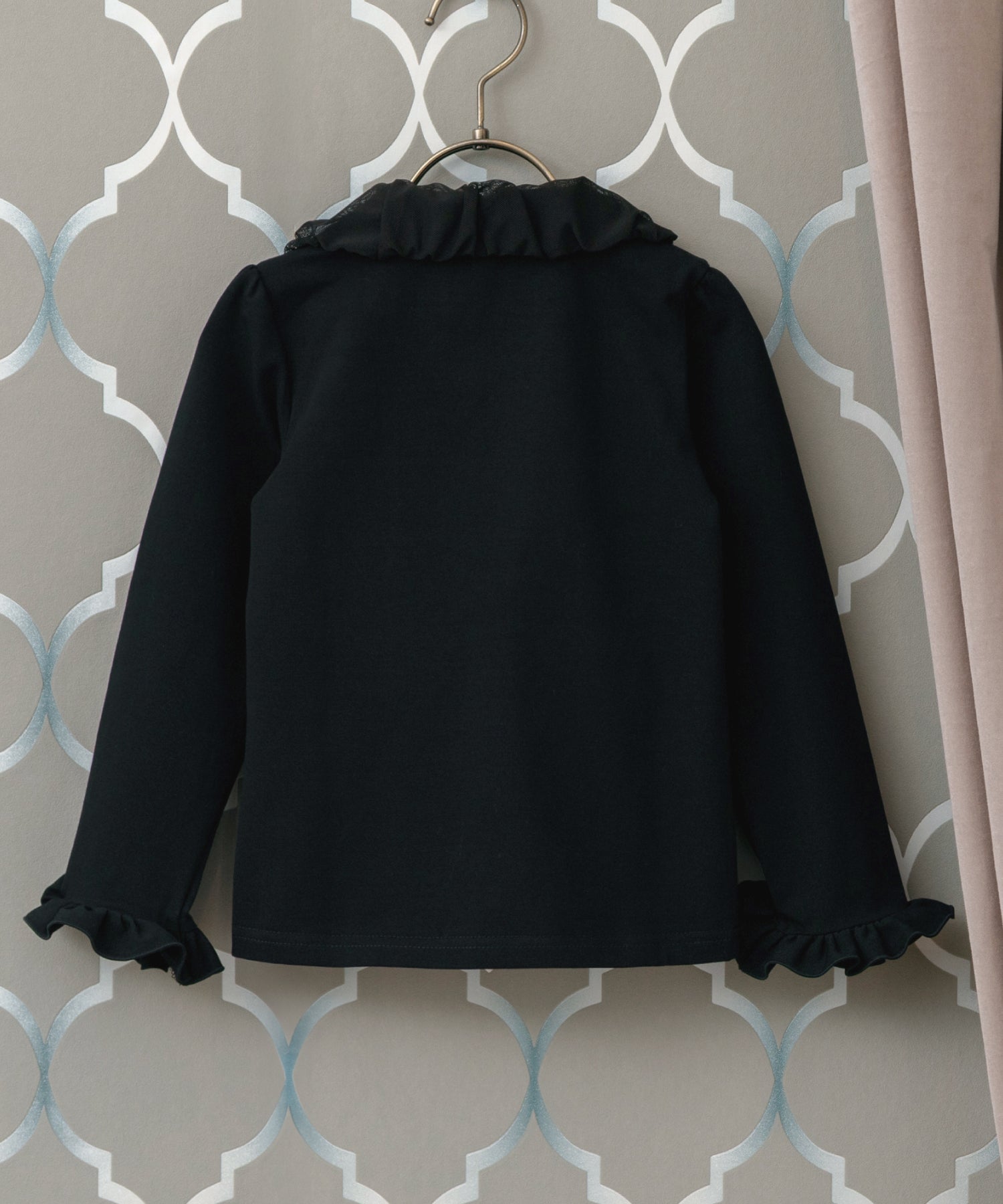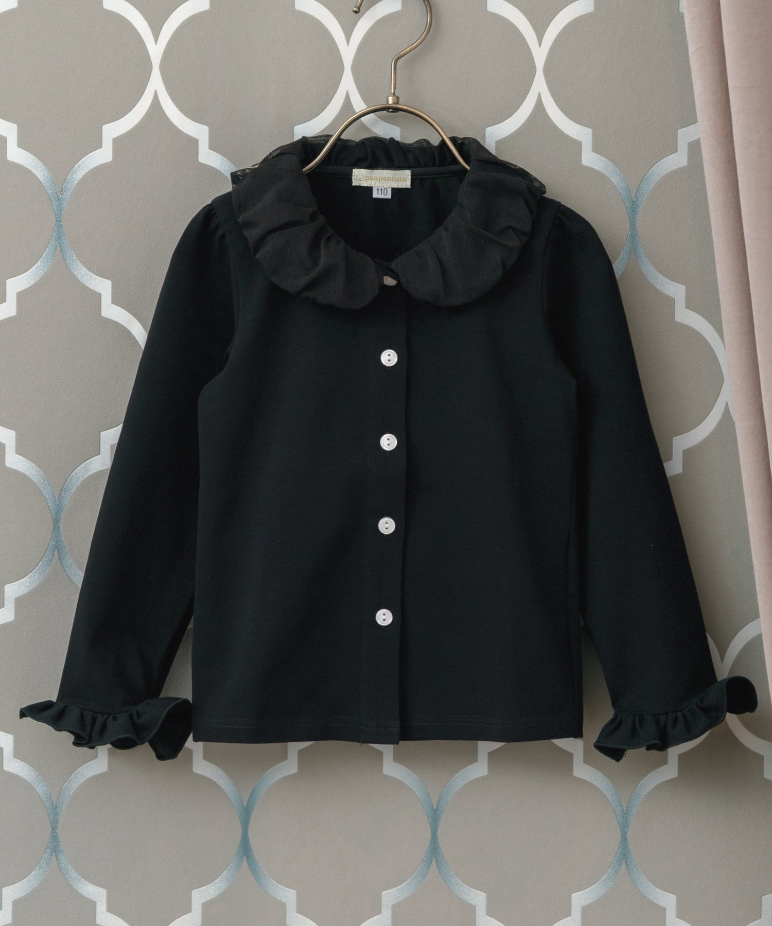 ふんわりな丸えりが顔まわりを優しい印象に。袖口のフリルをカーディガンなどの羽織りから見せてもとってもかわいい。セーターやトレーナーと合わせてちらっと見せるチュールをワンポイントにしても。