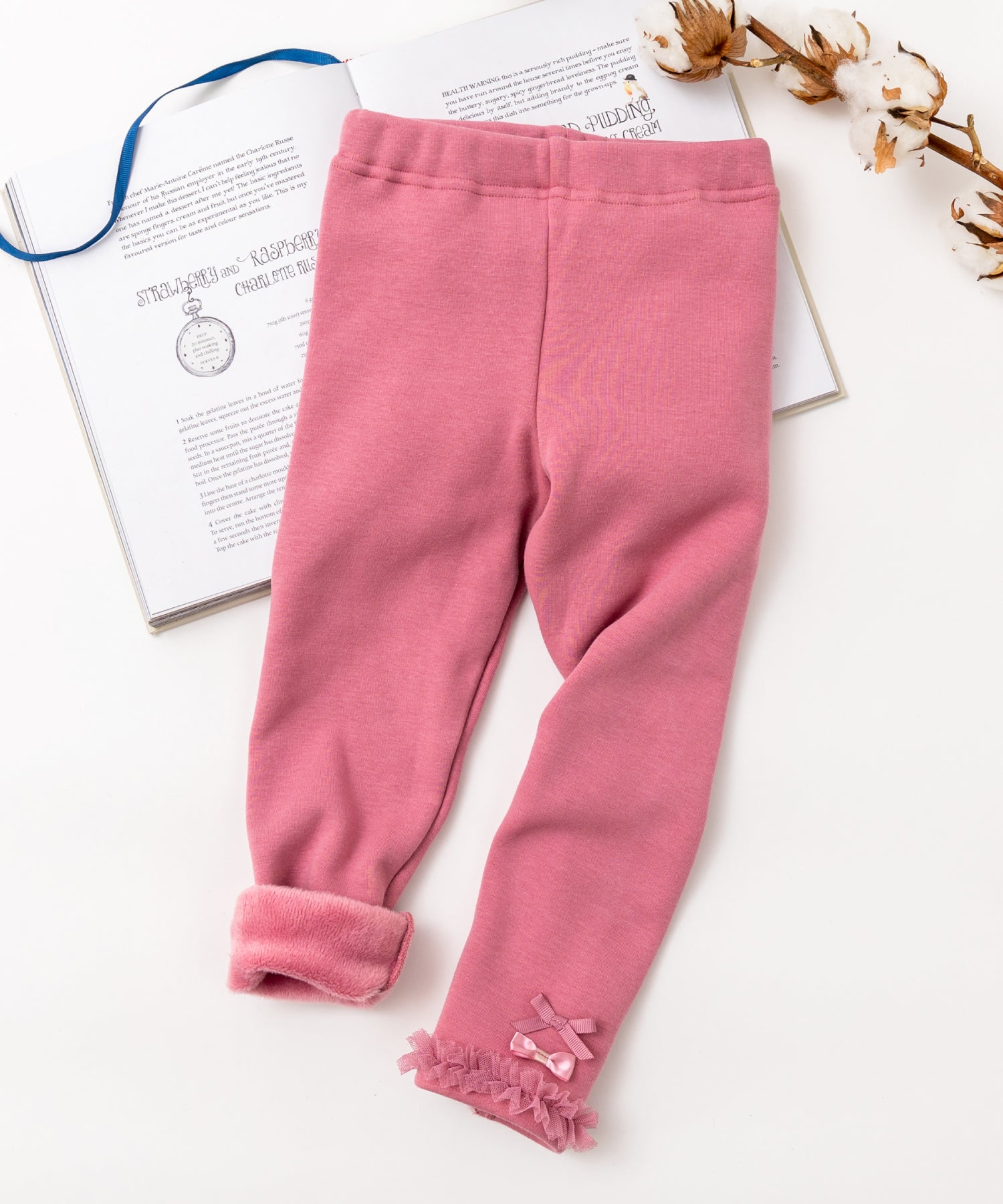 パンパンチュチュラインナップの中で一番あったかなパンツ。やわらかな裏起毛で優しい履き心地。足まわりのチュール&リボンでキュートに。ウエストゴムで履きやすく、伸縮性も良いので活発ガールにもぴったり。