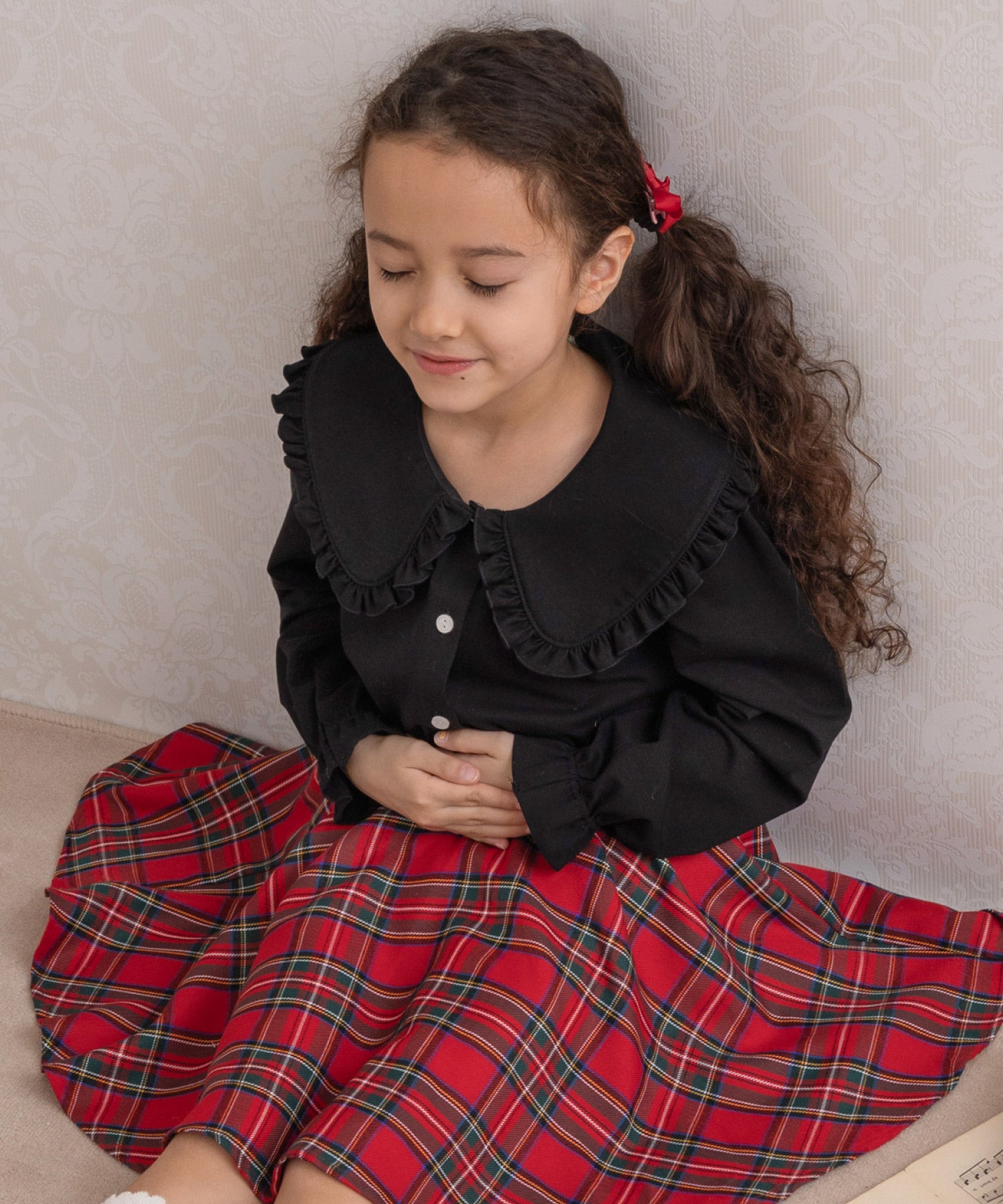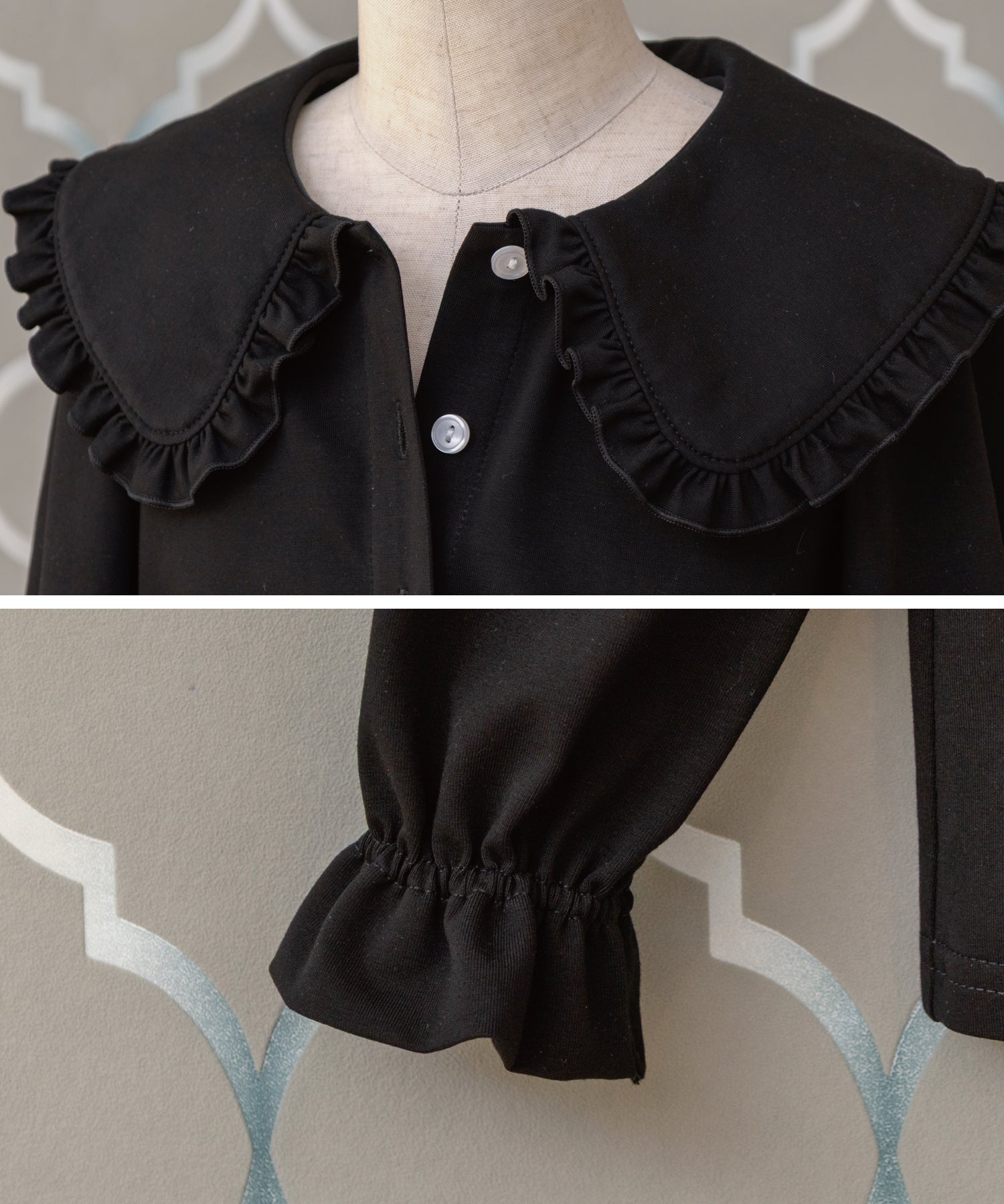 発表会やパーティーなど写真撮影する機会が多いシーンも、大きなクラシカル襟がお写真映えを約束。柔らかなストレッチ生地で動きやすく、シワになりにくい素材。お子様も動きやすくママも嬉しい。