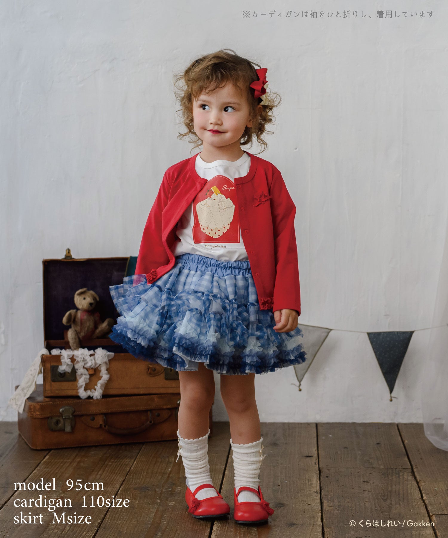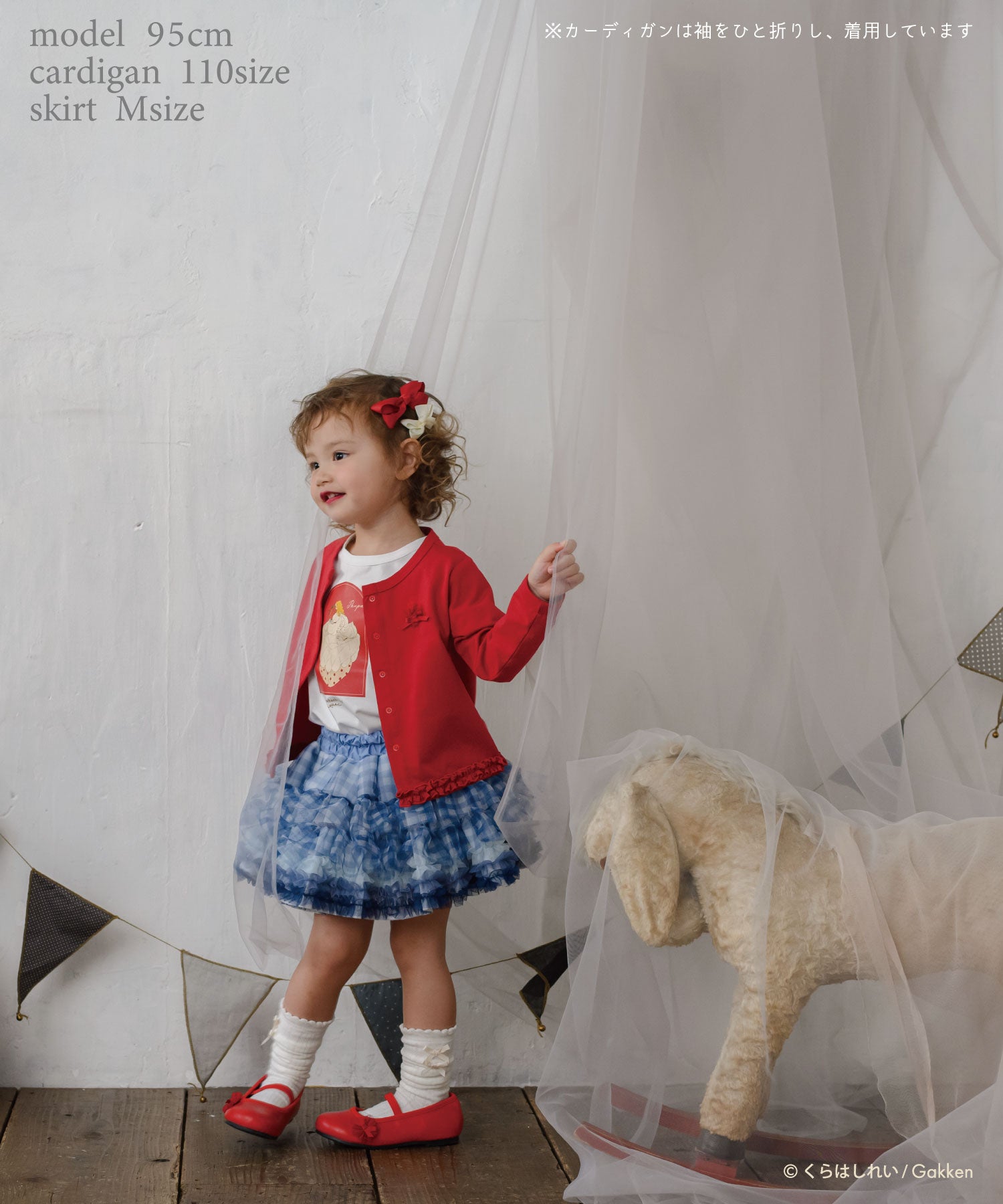 大きないちごを口いっぱいに頬張って・・・甘酸っぱい香りがしてきそう。袖先に仲良く並んだチュールポンポンがアクセント。