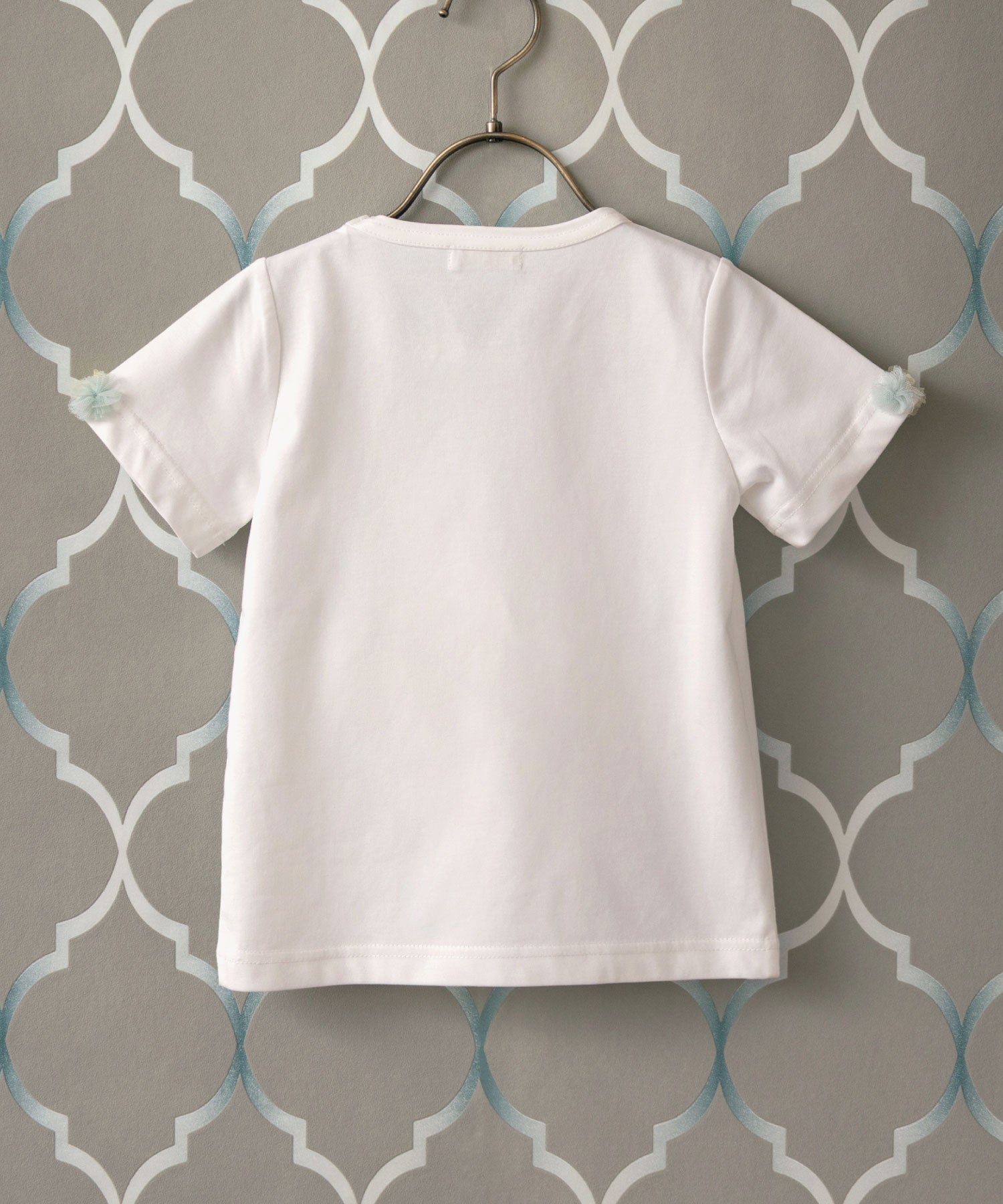 小さな子どものあたたかく優しいタッチのイラストが印象的な半袖トップス。
