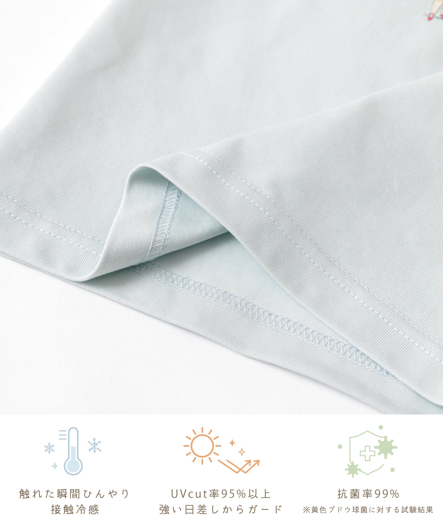 かわいいのはもちろん、着るだけで紫外線対策ができるUVcut素材。伸縮性のあるカットソー生地で、快適な着心地。