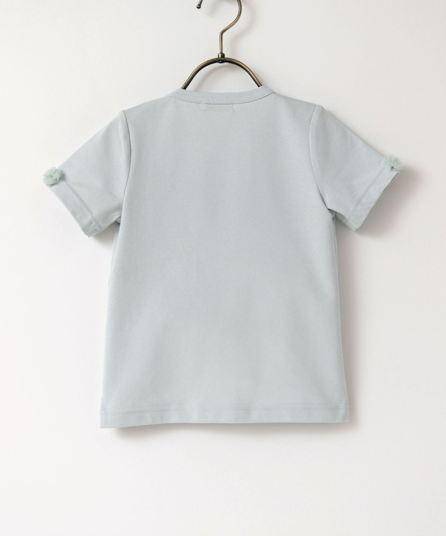 小さな子どもの温かく優しいタッチのイラストが印象的な半袖トップス。
