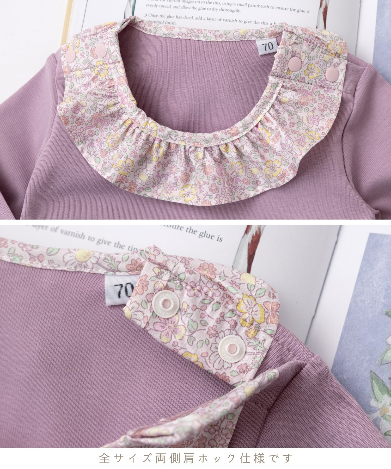 さらりとしたストレッチ素材で快適に過ごせます。肩と股部分はホック仕様でお着替えも簡単。無地ベースだから着回し抜群。 ブルマやチュチュと合わせたコーデがおすすめ。