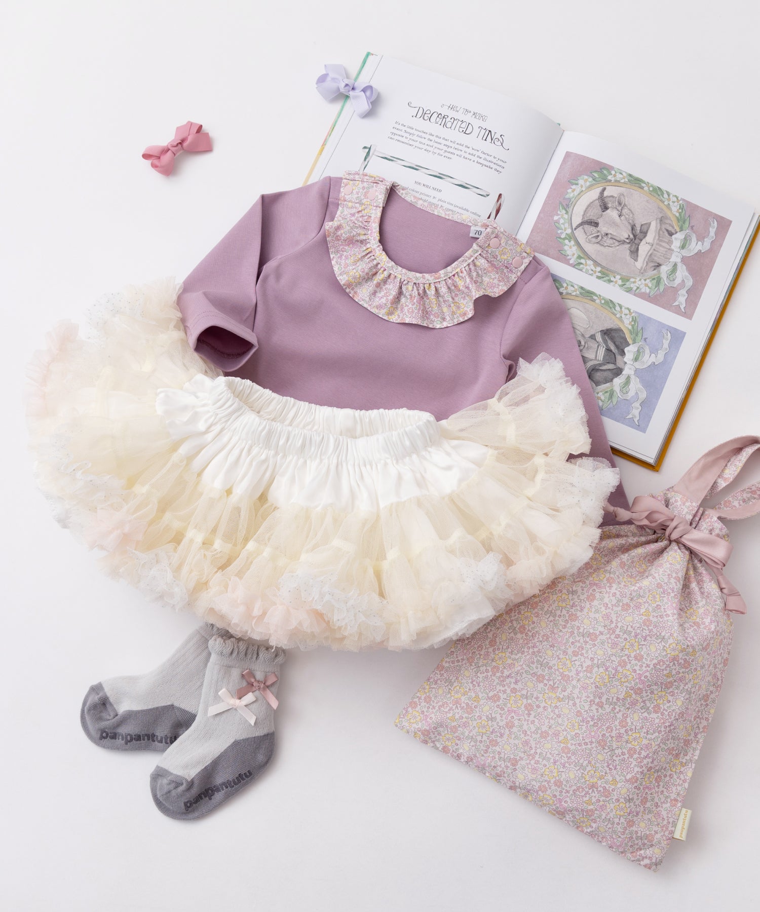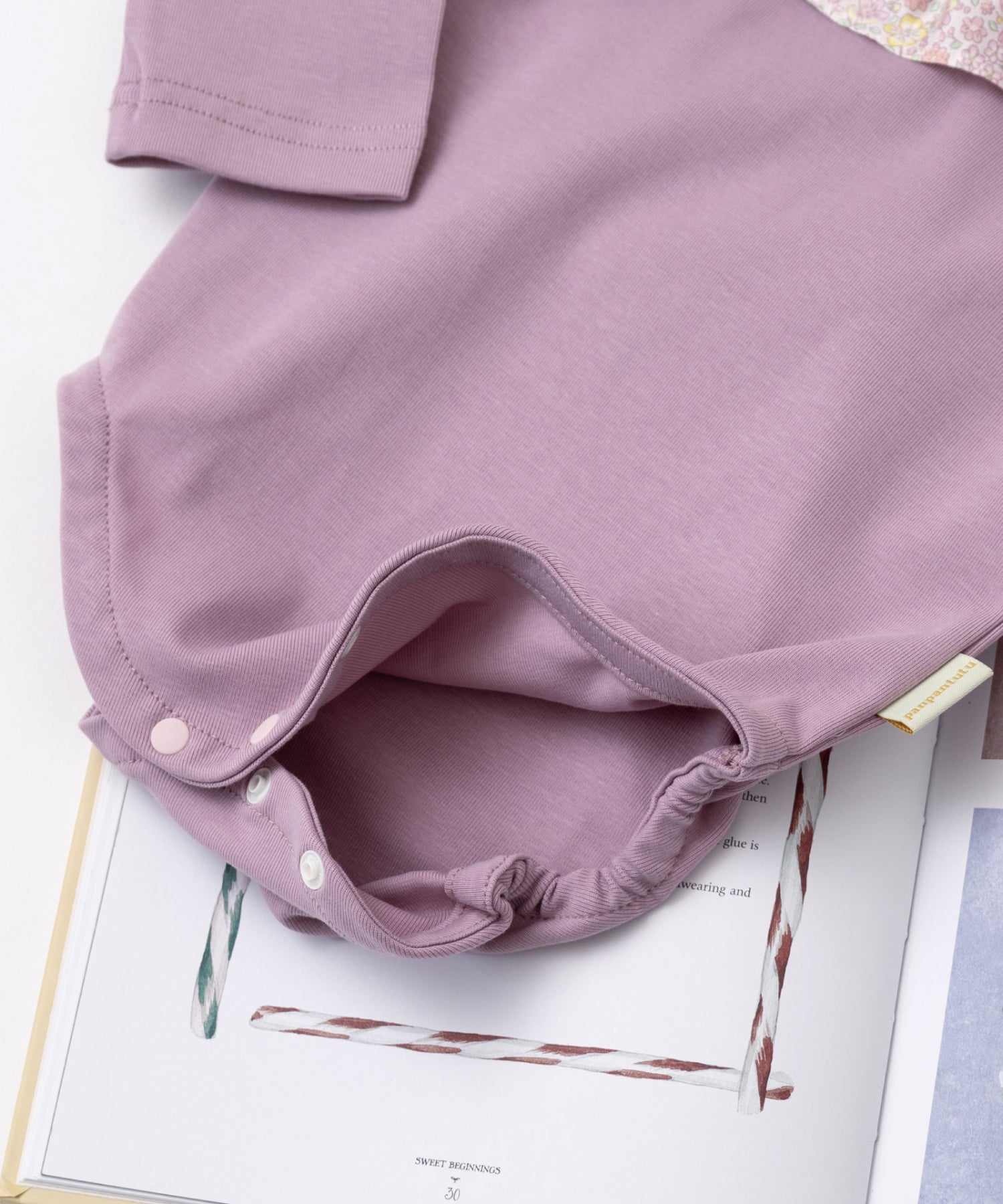 上品スウィートなラベンダーカラーがベビーをキュートに演出。