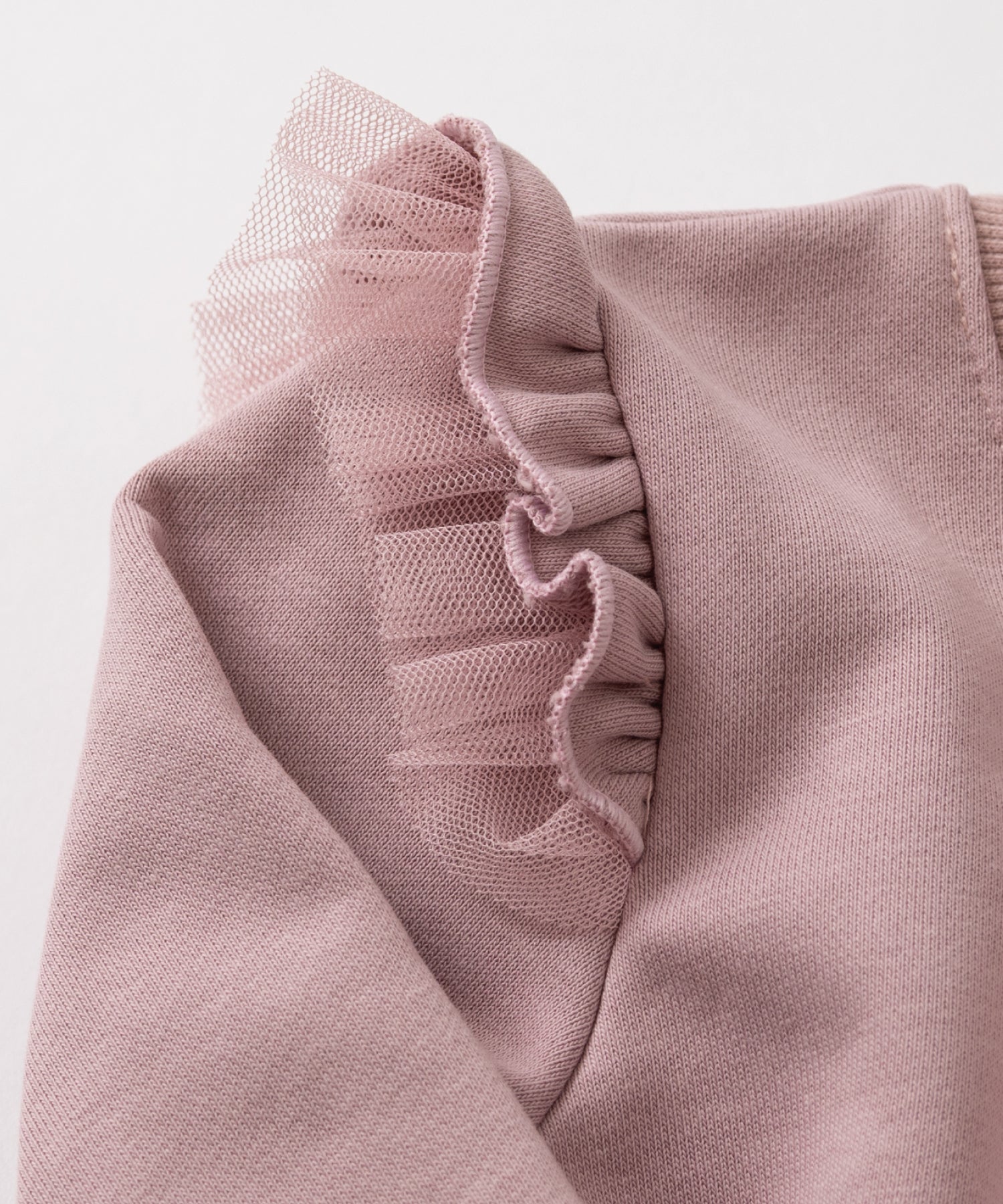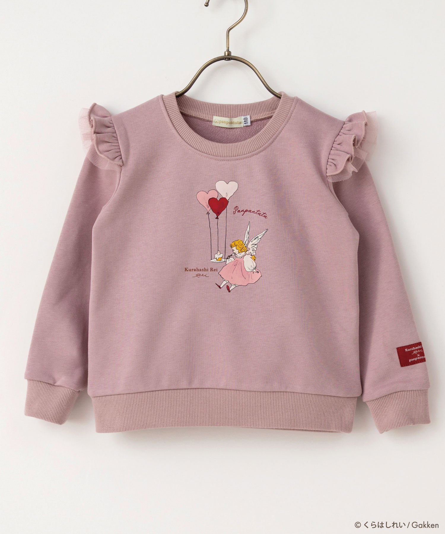 ほどよい厚みのスウェット素材でデイリーに使いやすく、着心地抜群。ブラウスを重ねて襟をのぞかせると、よりガーリーなおめかしスタイルに。両肩のWフリルと左袖のコラボタグがアクセント。