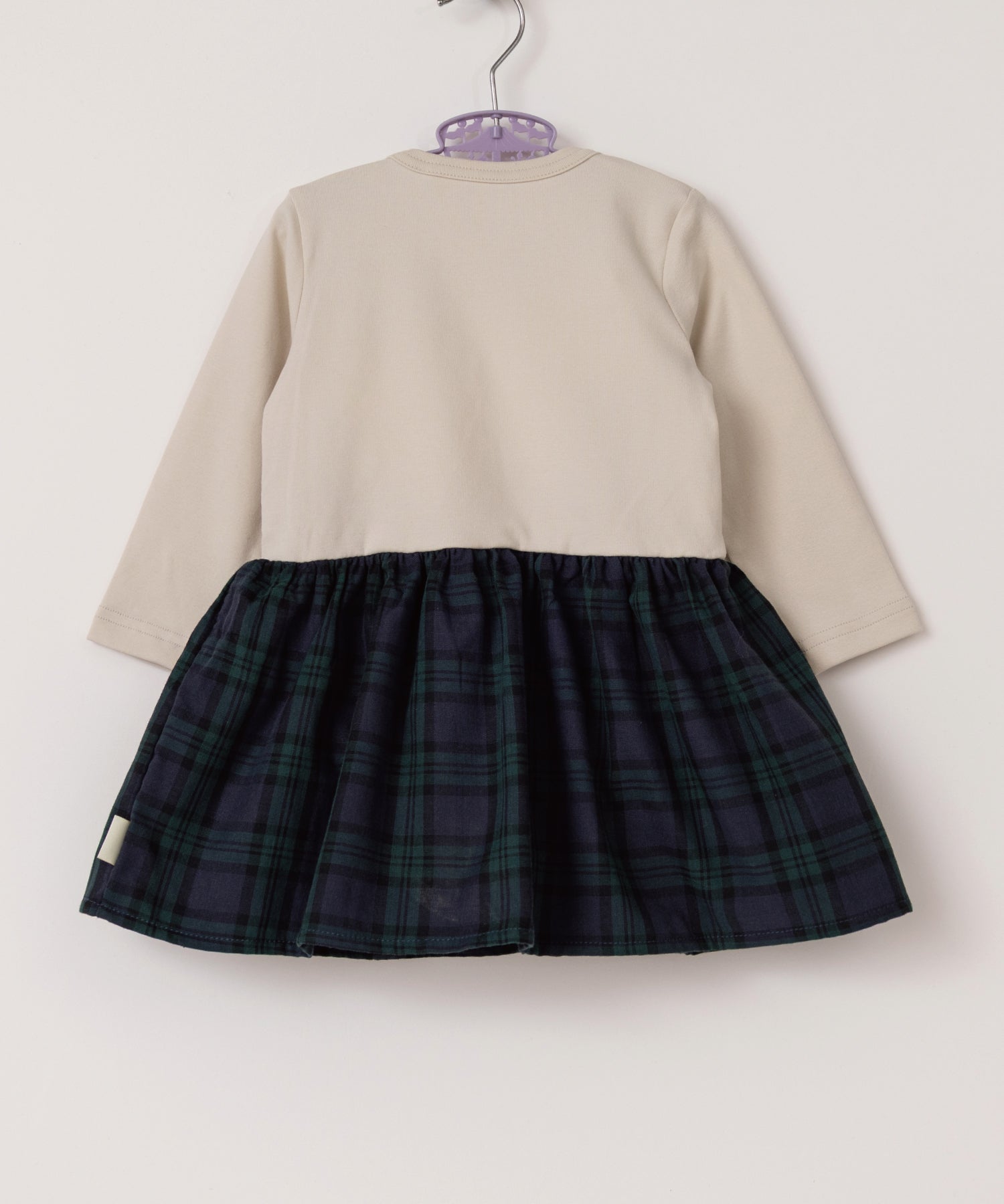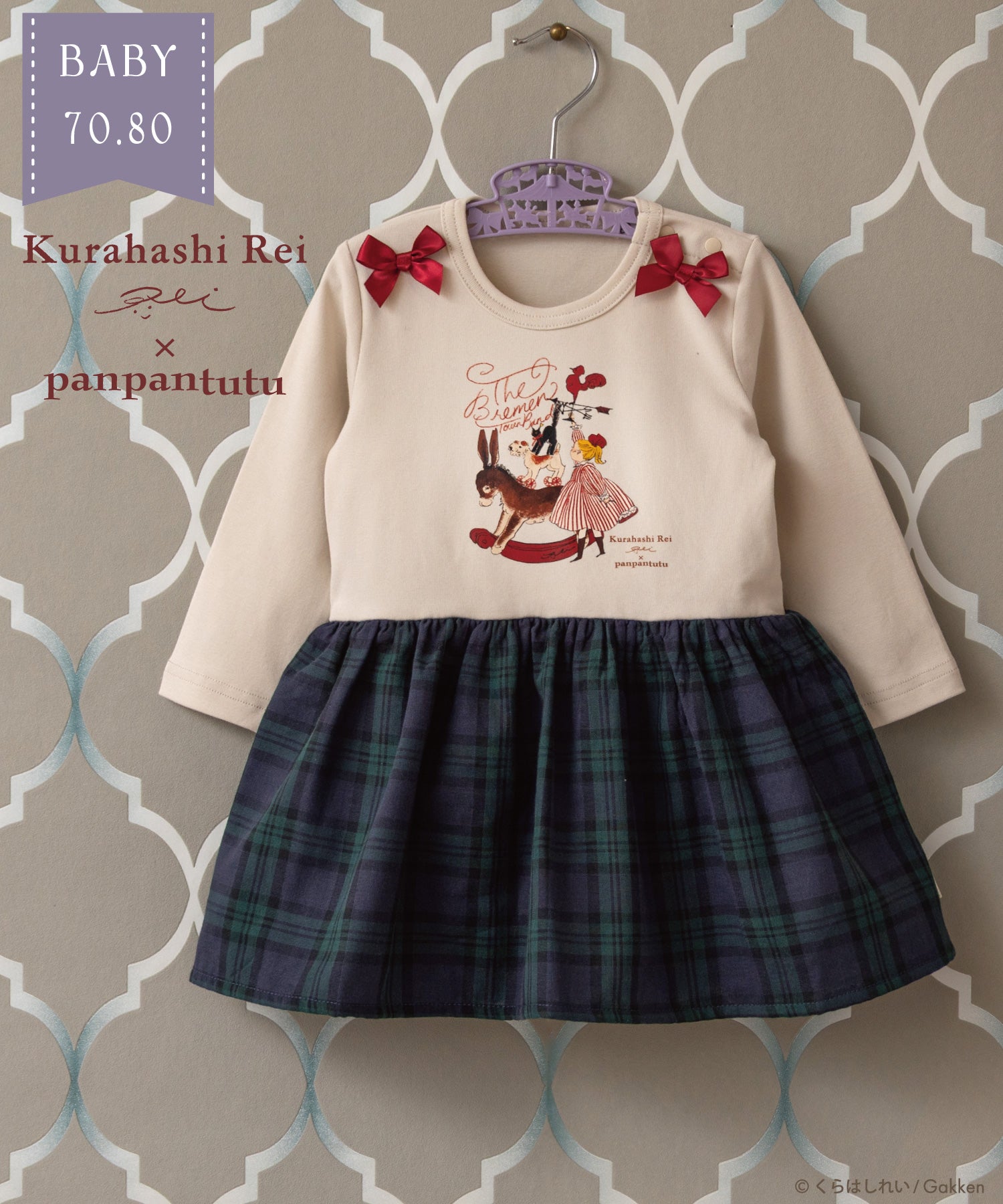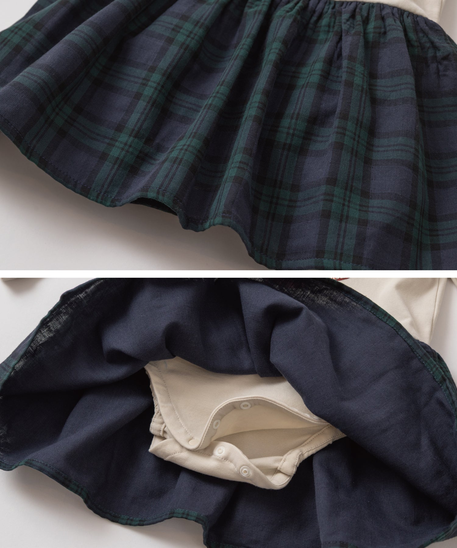 小さな子どもたちのあたたかく優しいタッチのイラストが印象的なロンパースワンピ。