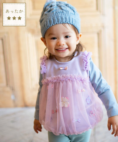 お花とリボンのチュニックベスト/スモーキーラベンダー