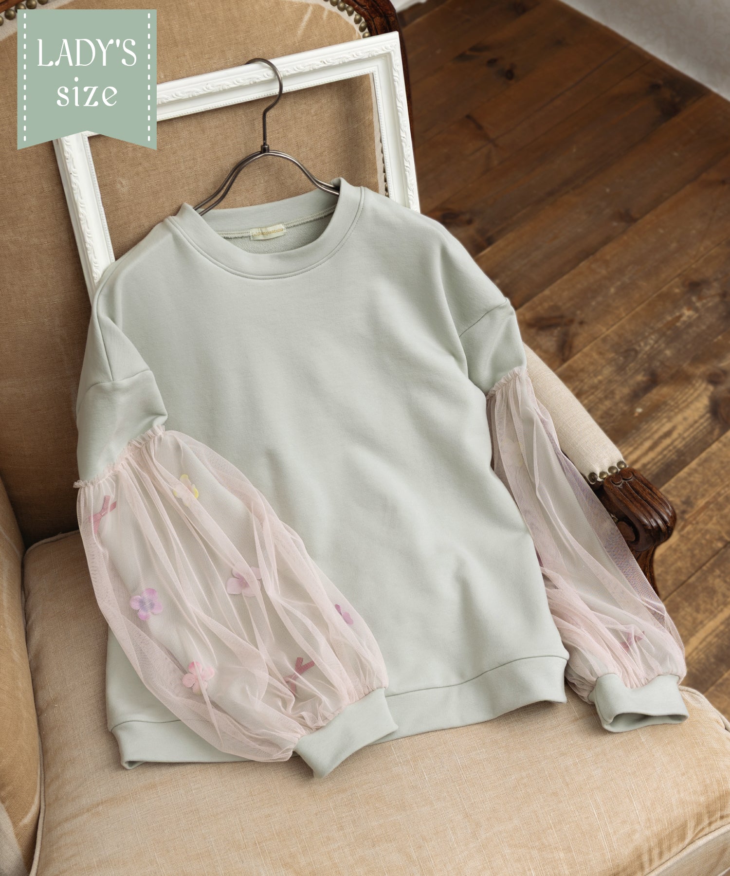 お袖に咲くお花とリボンをやわらかなチュールで包み込み、大人も楽しめる上品な甘さに仕上げました。