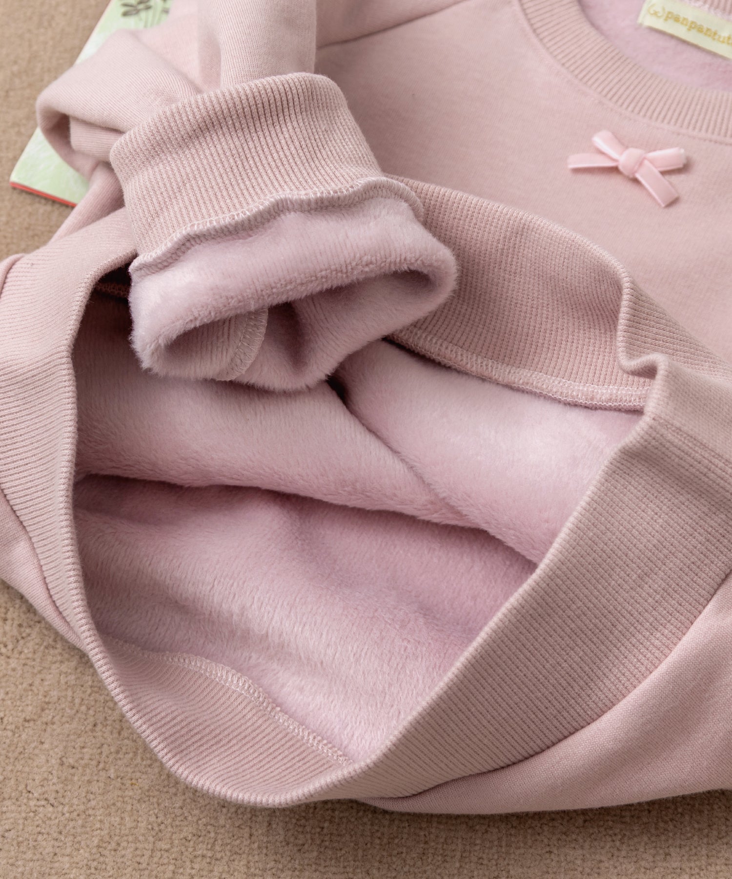 しっとりふわもこの肌触りのいい裏起毛で、袖を通すたびに幸せ気分になるスウェット。ストレッチ性の良いやわらかい素材で着心地抜群。