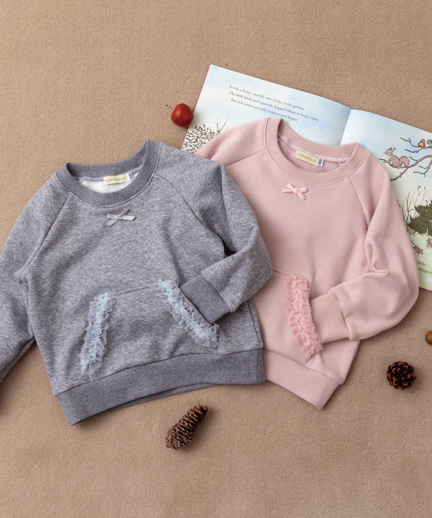 チュールフリルをデコレーションしたふわもこポケット付き。