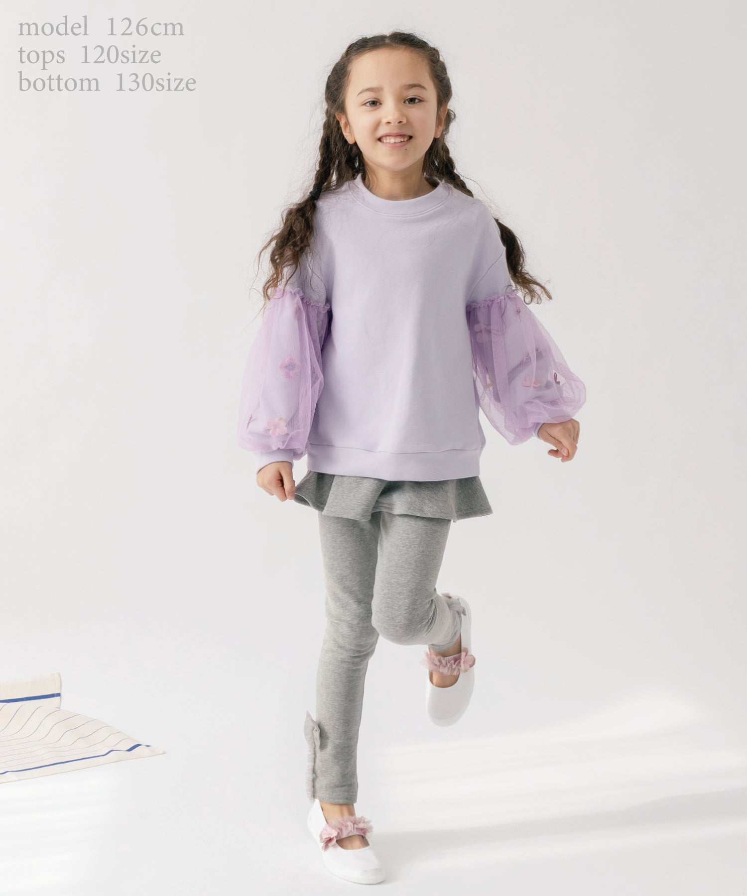 ラベンダーでまとめた華やかなカラー。チュチュと合わせてとびきりスウィートに、細身パンツと合わせてカジュアルダウンするのもおすすめ。