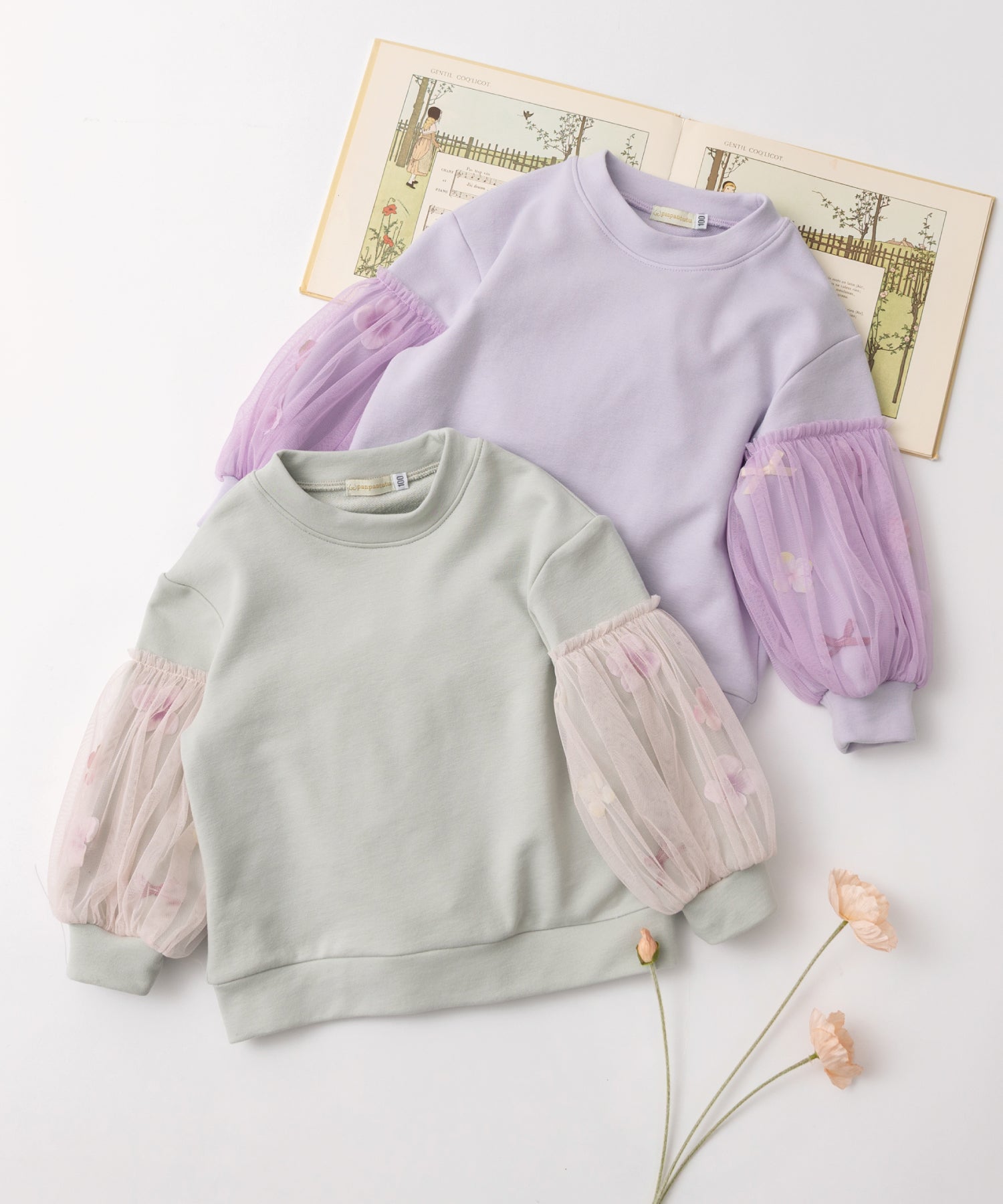 人気シリーズ「お花とリボン」から、待望のスウェットトップがデビュー。