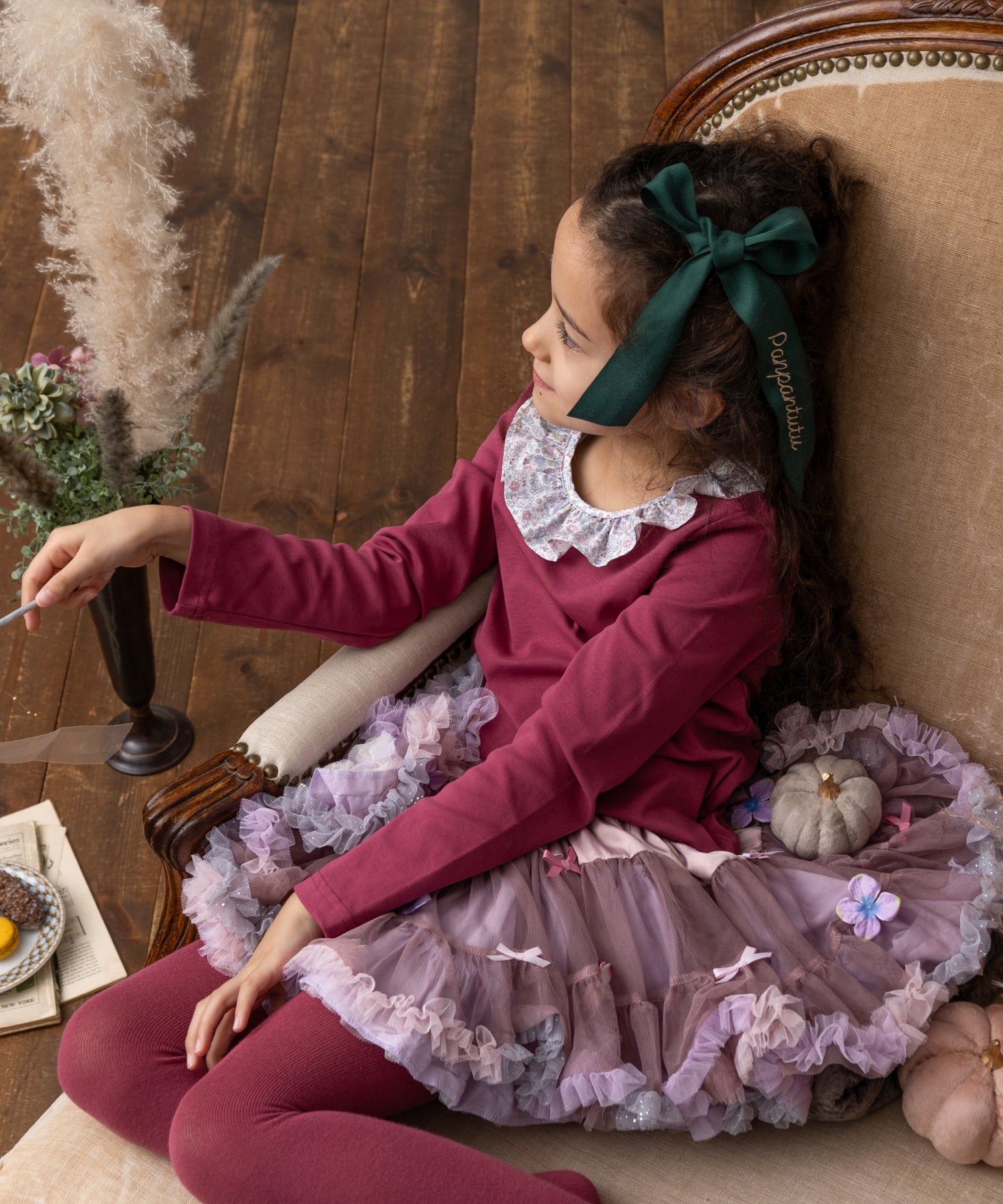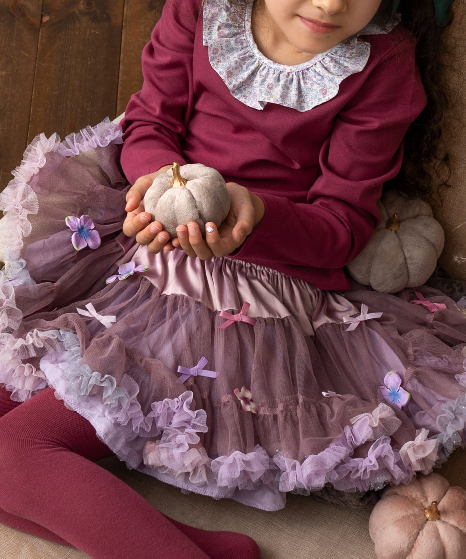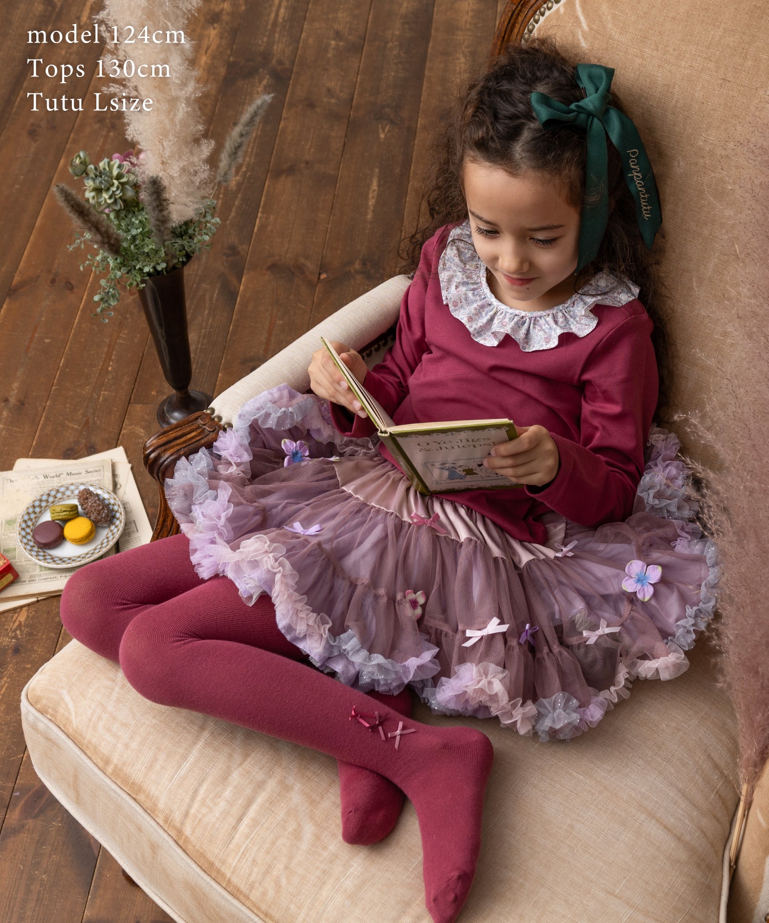 花びらとリボンを一つ一つ丁寧に縫い付けた繊細でリッチなチュチュ。
