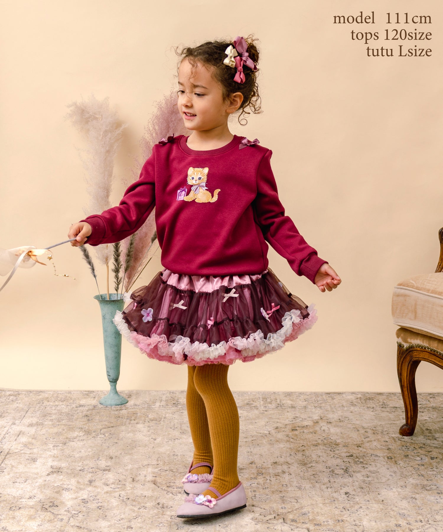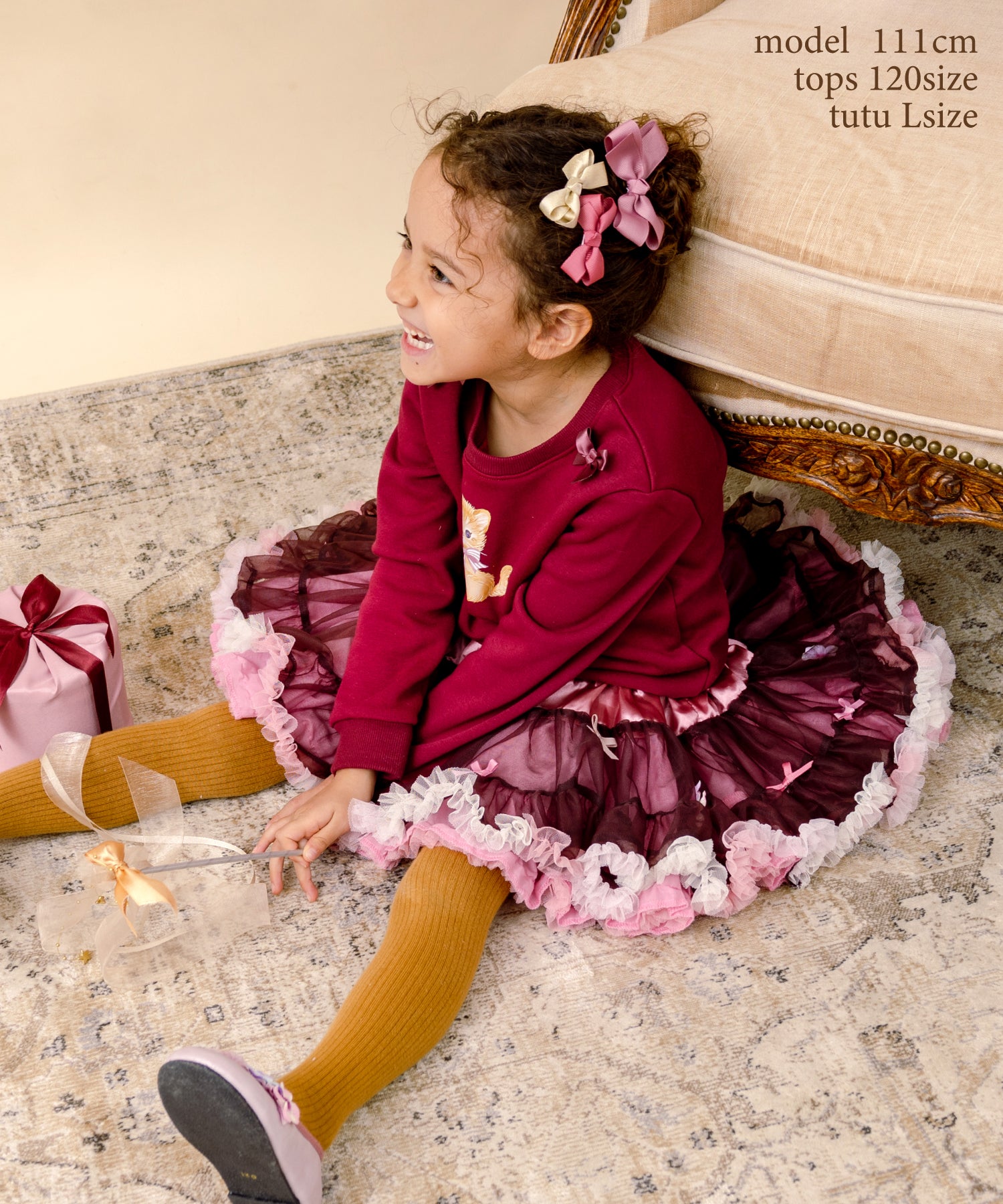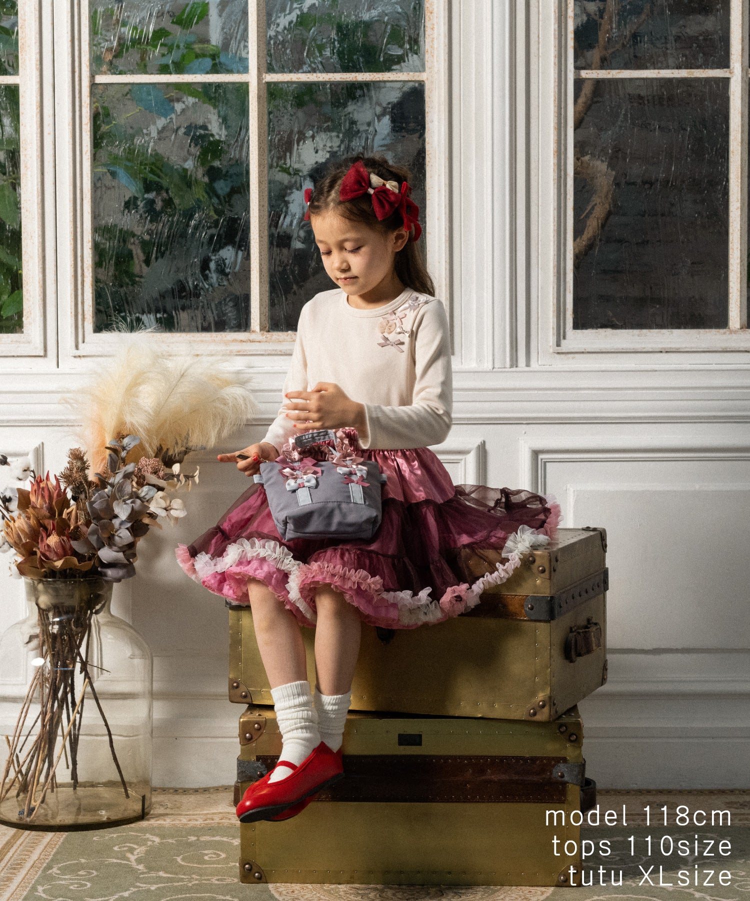 花びらとリボンを一つ一つ丁寧に縫い付けた繊細でリッチなチュチュ。