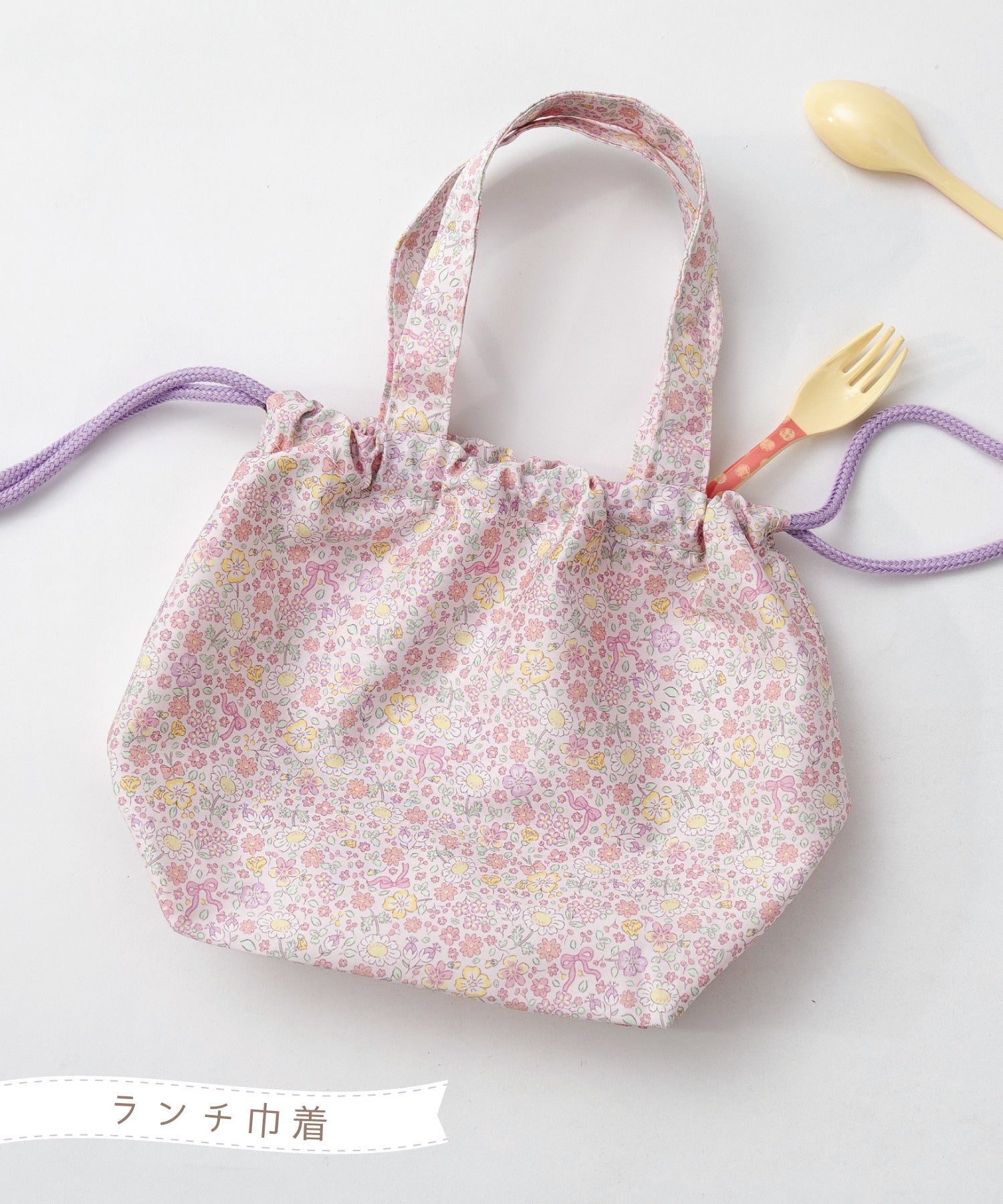 子供用〜大きめのお弁当も入る、ゆったりサイズのランチ巾着バッグ。