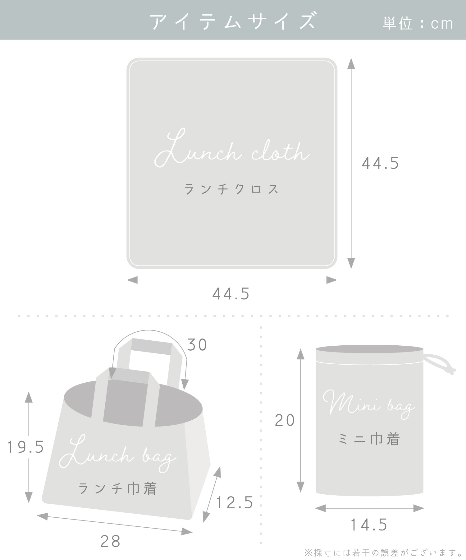 | ランチ巾着 | 19.5 | 28 | 12.5 |